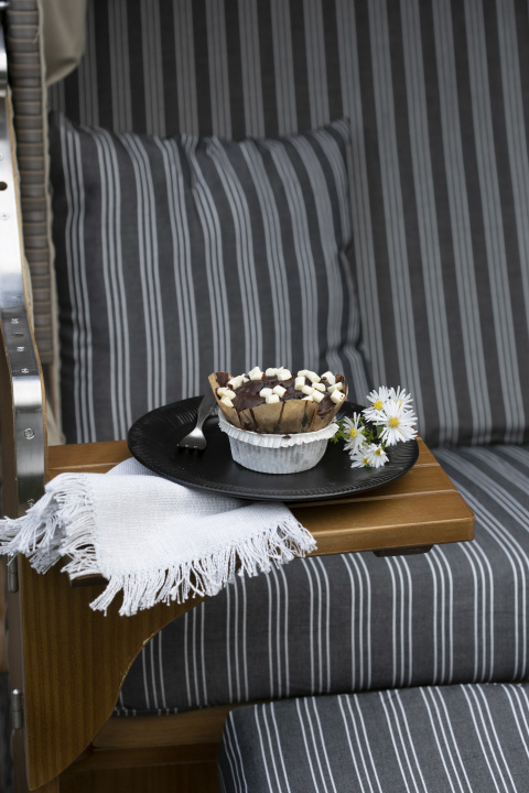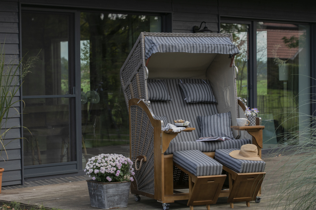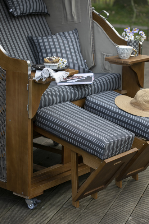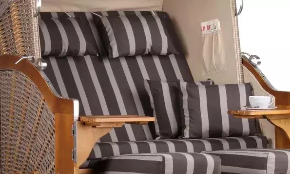 Komfortabler Rückzugsort im Strandkorb Schleswig Pinie in Mokka Braun mit Dessin 554