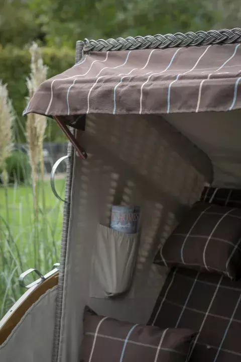 Entspannung pur im Strandkorb Schleswig Pinie in Mokka Braun - Dessin 556