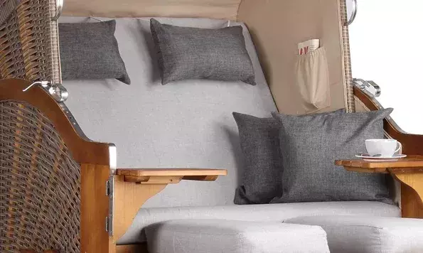 Entspannung pur im Strandkorb Schleswig Pinie in Mokka Braun mit Dessin 559