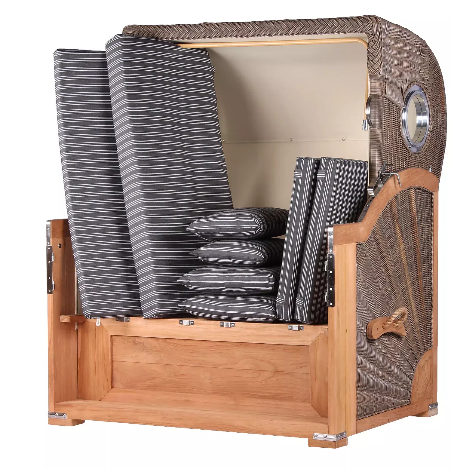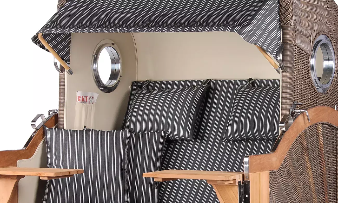Strandkorb Westerland Teak Bullauge PE grey Dessin 500