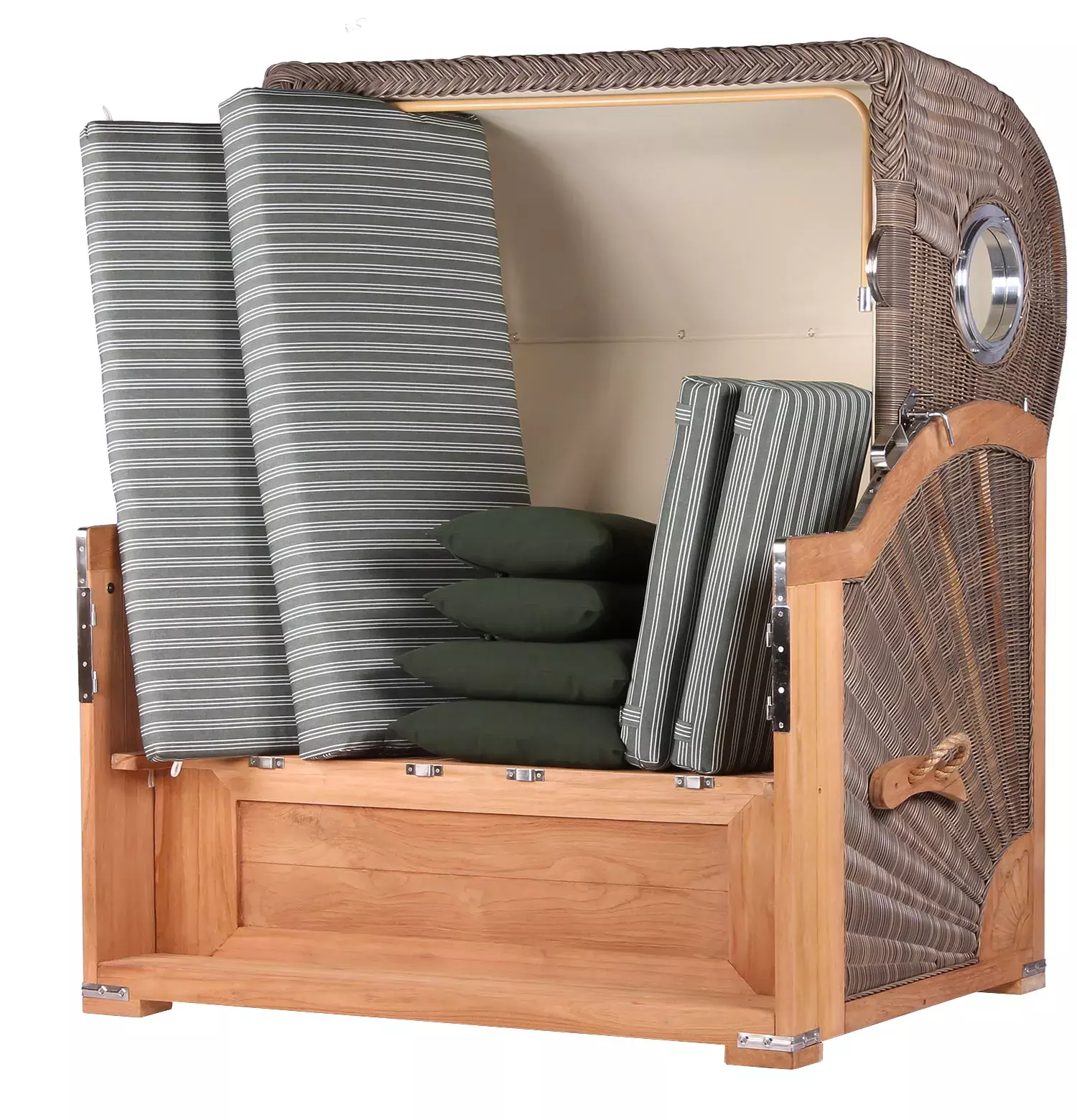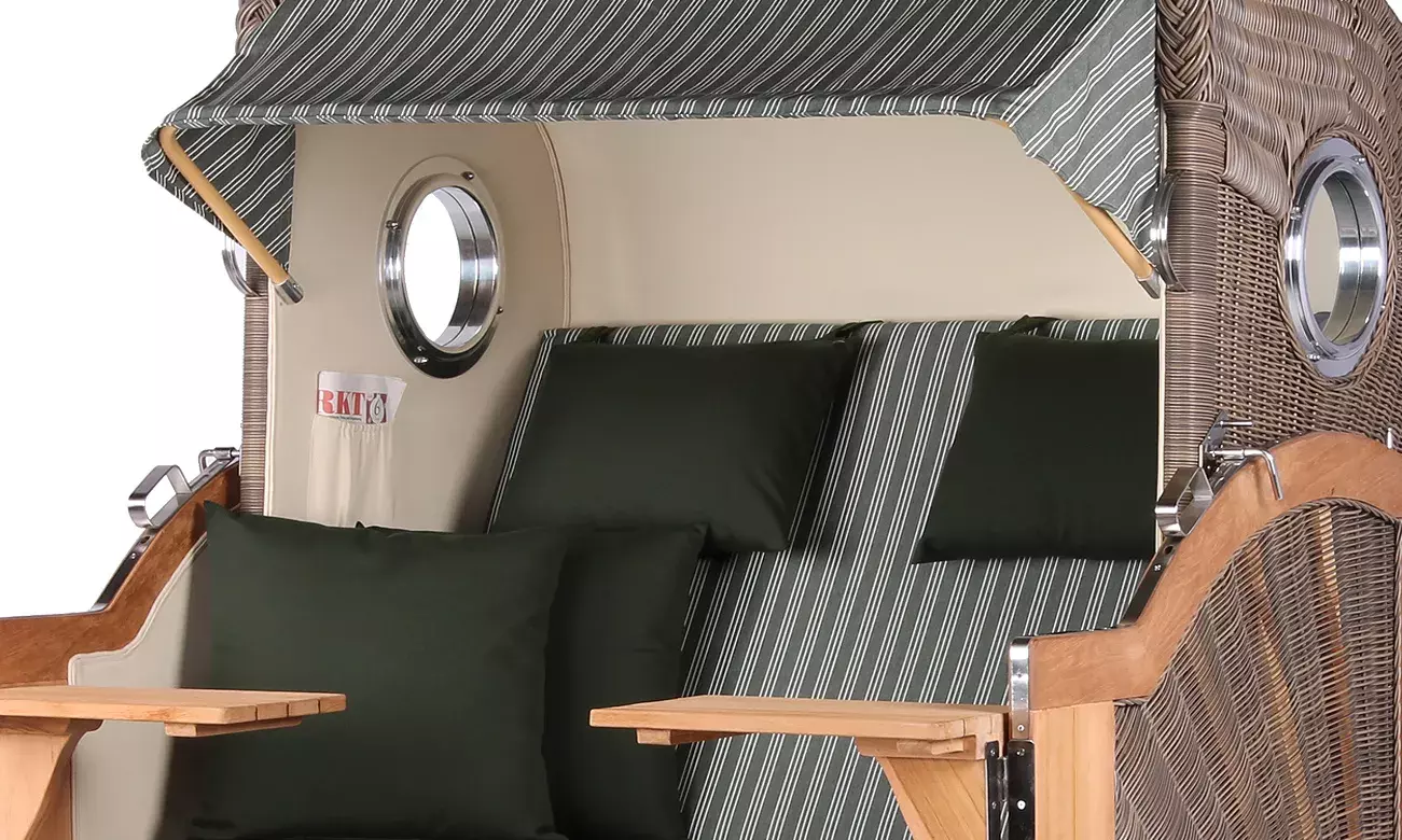 Strandkorb Westerland Teak Bullauge PE grey Dessin 504