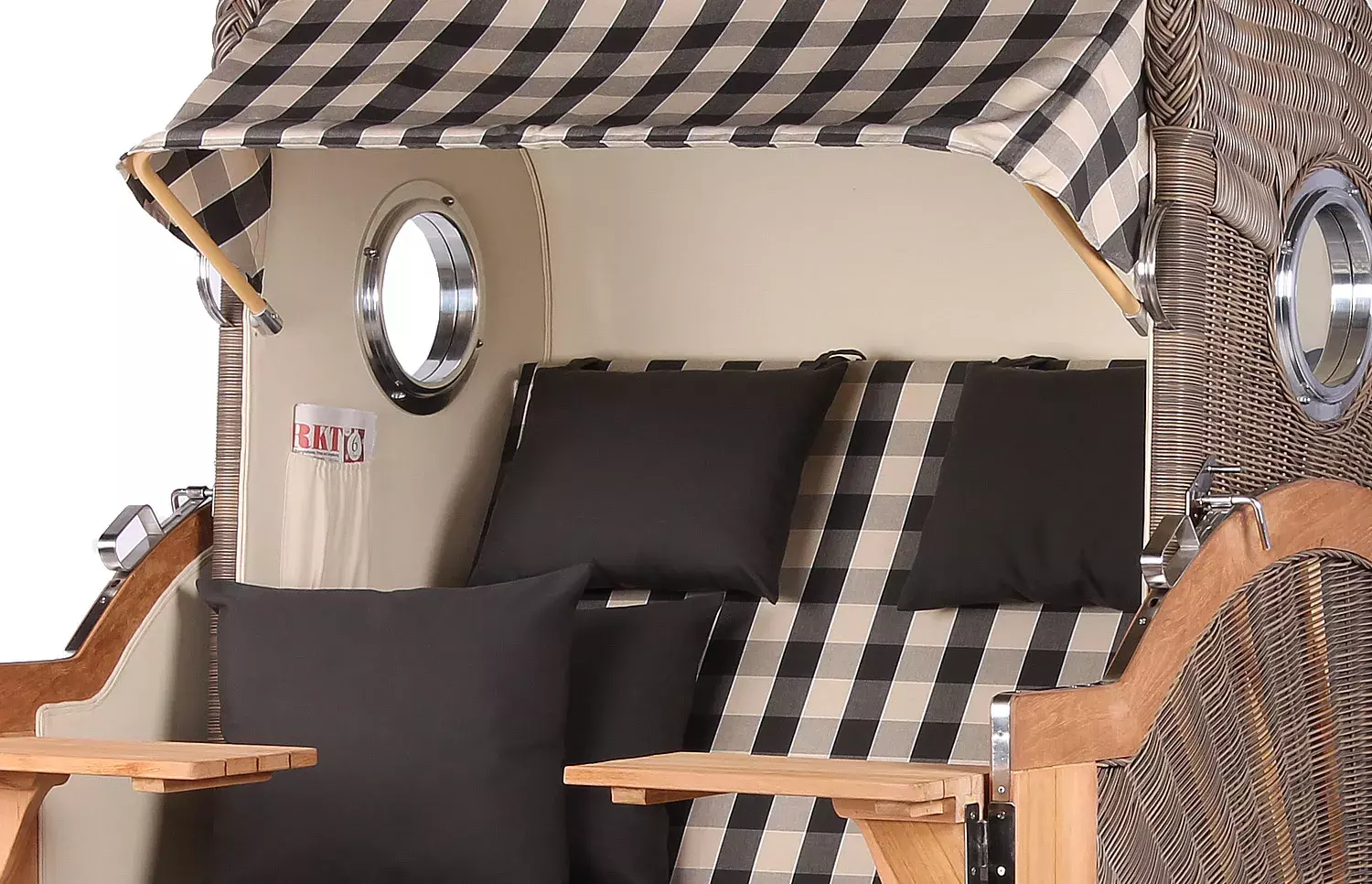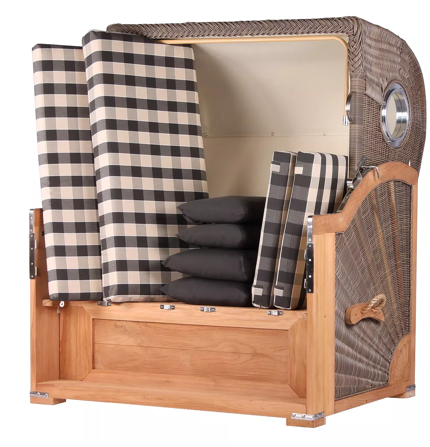 Strandkorb Westerland Teak Bullauge PE grey Dessin 505