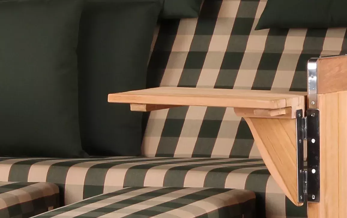 Der Strandkorb Westerland überzeugt durch die besonders hochwertig verarbeiteten edlen Materialien. Das massive Teakholz mit seinem warmen, hellen Farbton verleiht dem Strandkorb Westerland seinen ganz besonderen Charakter und macht ihn zu einem qualitativ hochwertigen Gartenmöbel. Teakholz ist ein besonders hochwertiges Holz und eignet sich aufgrund seiner natürlichen Eigenschaften hervorragend für Strandkörbe. Wir verwenden ausschließlich nachhaltig produziertes Plantagen-Teakholz. Aufgrund seines hohen Öl- und Kautschukanteils hat Teakholz einen natürlichen Verwitterungs- und Alterungsschutz. Egal ob Sie die im Laufe der Zeit entstehende silbrig-graue Patina lieben oder den natürlichen hellen Farbton bevorzugen, der sich durch regelmäßiges Ölen des Holzes erhalten lässt - unser Teakholz überzeugt durch seine Langlebigkeit und die hochwertige Optik!