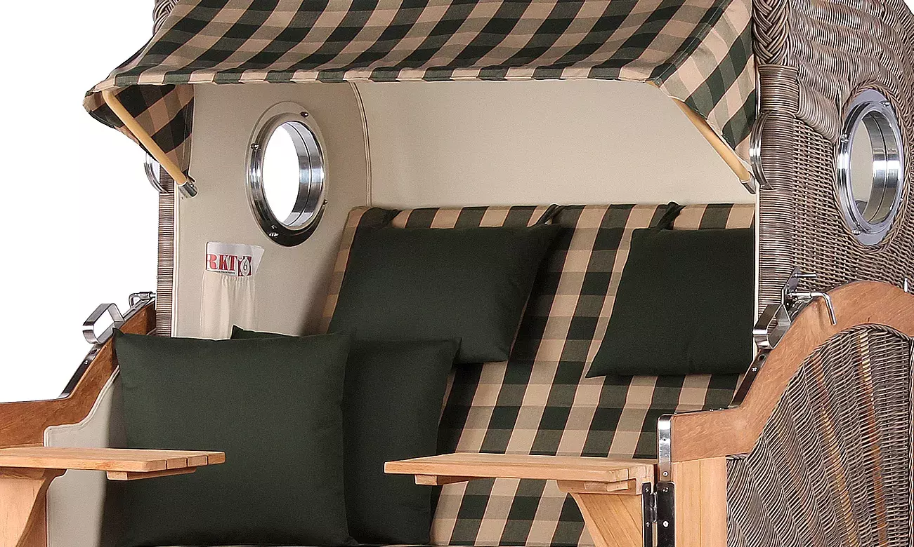 Strandkorb Westerland Teak Bullauge PE grey Dessin 506