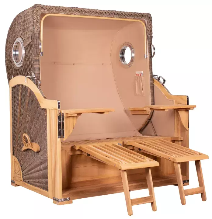 Strandkorb Westerland Teak Bullauge PE grey Dessin 585