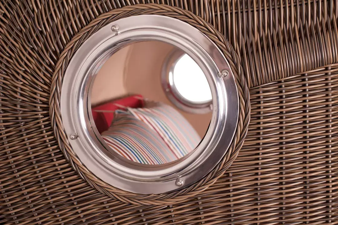 - Bullauge aus hochglänzendem Aluminium mit Sicherheitsglas auf jeder Seite