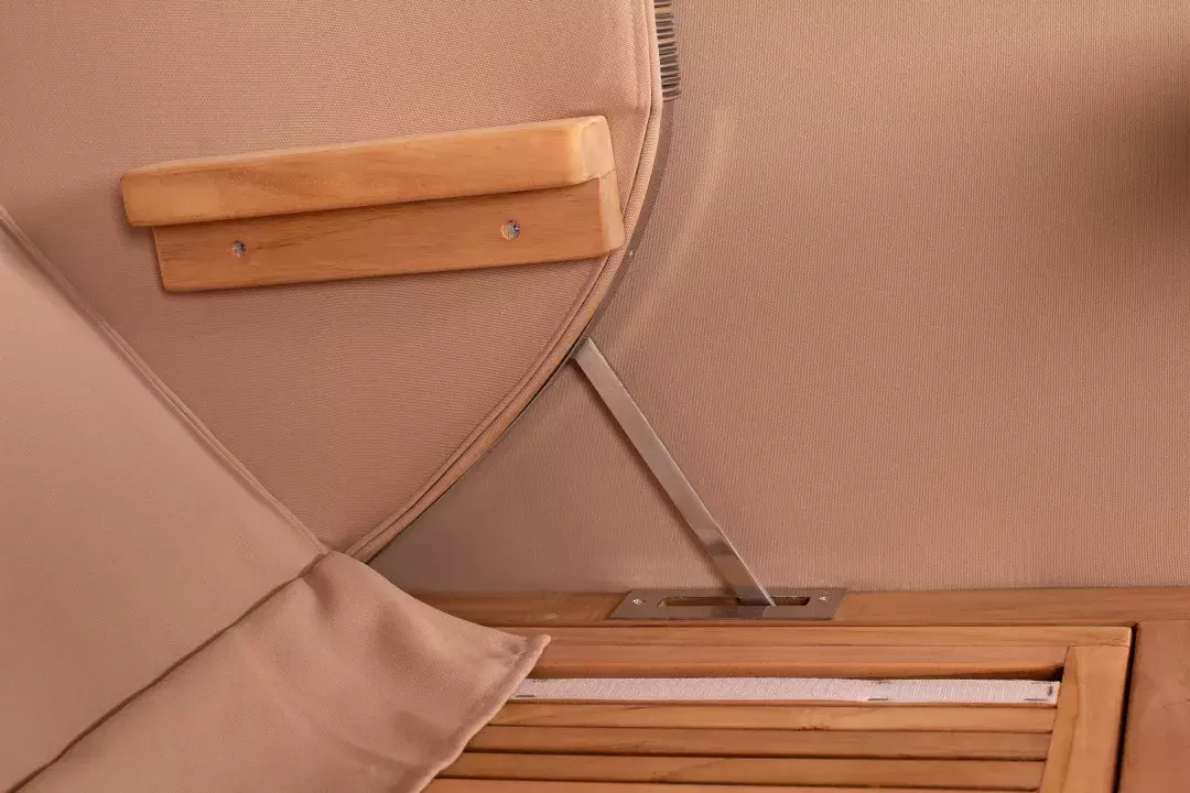 Der Strandkorb Westerland überzeugt durch die besonders hochwertig verarbeiteten edlen Materialien. Das massive Teakholz mit seinem warmen, hellen Farbton verleiht dem Strandkorb Westerland seinen ganz besonderen Charakter und macht ihn zu einem qualitativ hochwertigen Gartenmöbel. Teakholz ist ein besonders hochwertiges Holz und eignet sich aufgrund seiner natürlichen Eigenschaften hervorragend für Strandkörbe. Wir verwenden ausschließlich nachhaltig produziertes Plantagen-Teakholz. Aufgrund seines hohen Öl- und Kautschukanteils hat Teakholz einen natürlichen Verwitterungs- und Alterungsschutz. Egal ob Sie die im Laufe der Zeit entstehende silbrig-graue Patina lieben oder den natürlichen hellen Farbton bevorzugen, der sich durch regelmäßiges Ölen des Holzes erhalten lässt - unser Teakholz überzeugt durch seine Langlebigkeit und die hochwertige Optik!