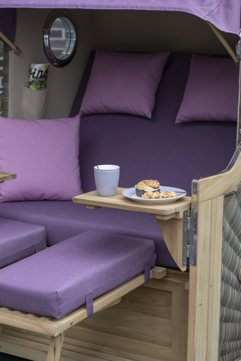 Der Strandkorb Westerland überzeugt durch die besonders hochwertig verarbeiteten edlen Materialien. Das massive Teakholz mit seinem warmen, hellen Farbton verleiht dem Strandkorb Westerland seinen ganz besonderen Charakter und macht ihn zu einem qualitativ hochwertigen Gartenmöbel. Teakholz ist ein besonders hochwertiges Holz und eignet sich aufgrund seiner natürlichen Eigenschaften hervorragend für Strandkörbe. Wir verwenden ausschließlich nachhaltig produziertes Plantagen-Teakholz. Aufgrund seines hohen Öl- und Kautschukanteils hat Teakholz einen natürlichen Verwitterungs- und Alterungsschutz. Egal ob Sie die im Laufe der Zeit entstehende silbrig-graue Patina lieben oder den natürlichen hellen Farbton bevorzugen, der sich durch regelmäßiges Ölen des Holzes erhalten lässt - unser Teakholz überzeugt durch seine Langlebigkeit und die hochwertige Optik!