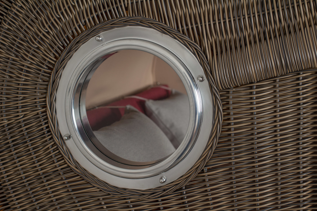 - Bullauge aus hochglänzemdem Aluminium mit Sicherheitsglas auf jeder Seite