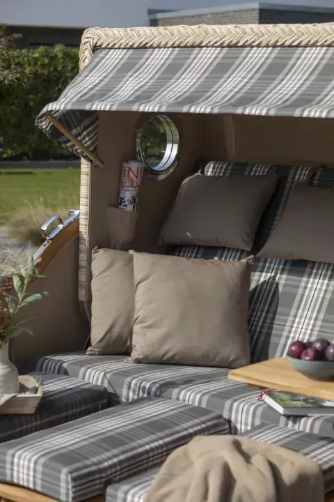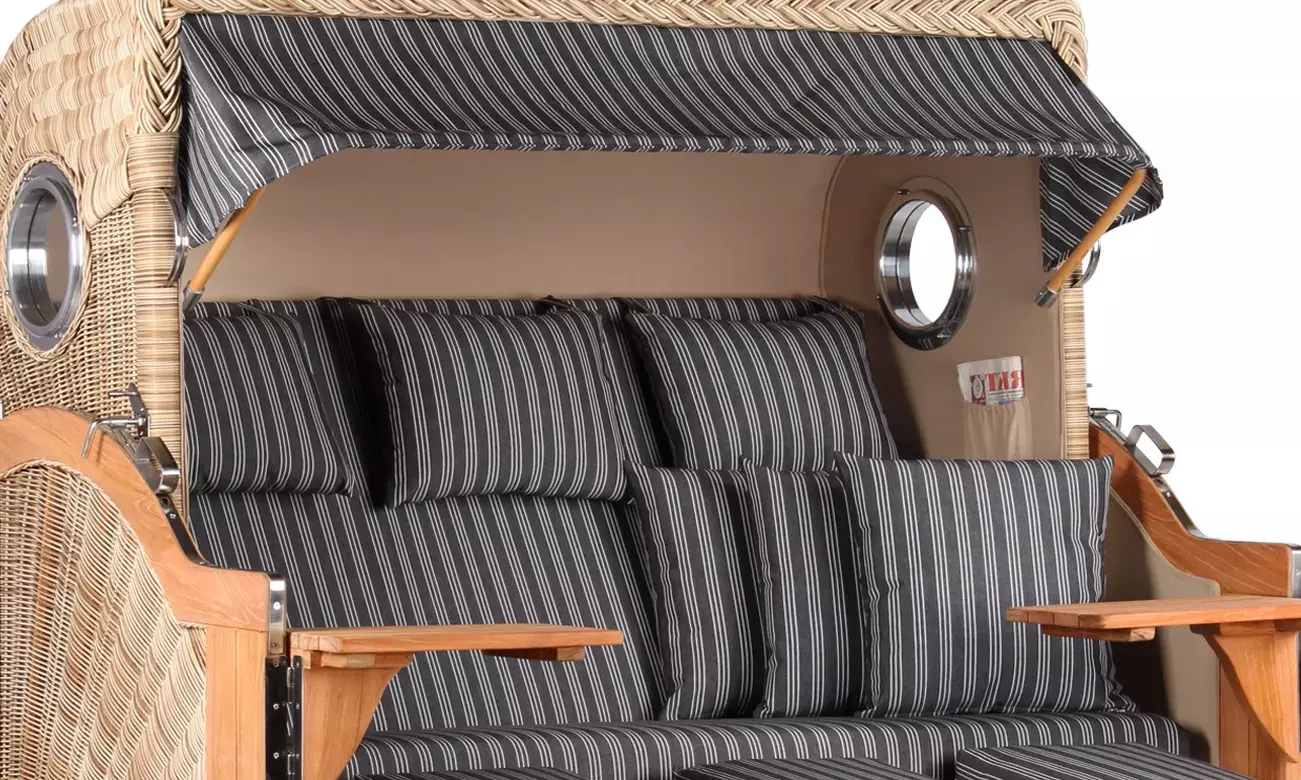 Strandkorb Westerland XXL Teak Bullauge PE shell Dessin 500
