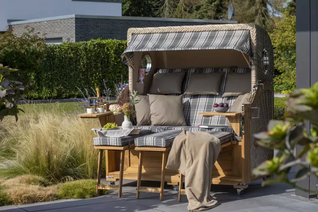 Die Strandkörbe im XXL-Format bieten mit ihren bequemen Polstern ausreichend Platz für bis zu drei Personen. So verwandelt der komfortable 3-Sitzer auch Ihren Garten in eine echte Wohlfühlzone!