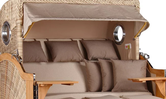 Strandkorb Westerland XXL Teak Bullauge PE shell Dessin 510