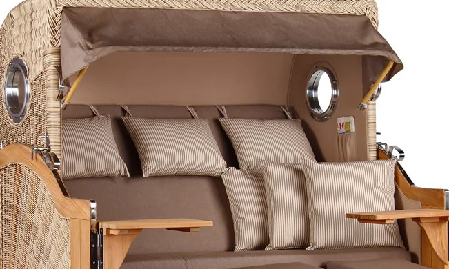 Strandkorb Westerland XXL Teak Bullauge PE shell Dessin 534