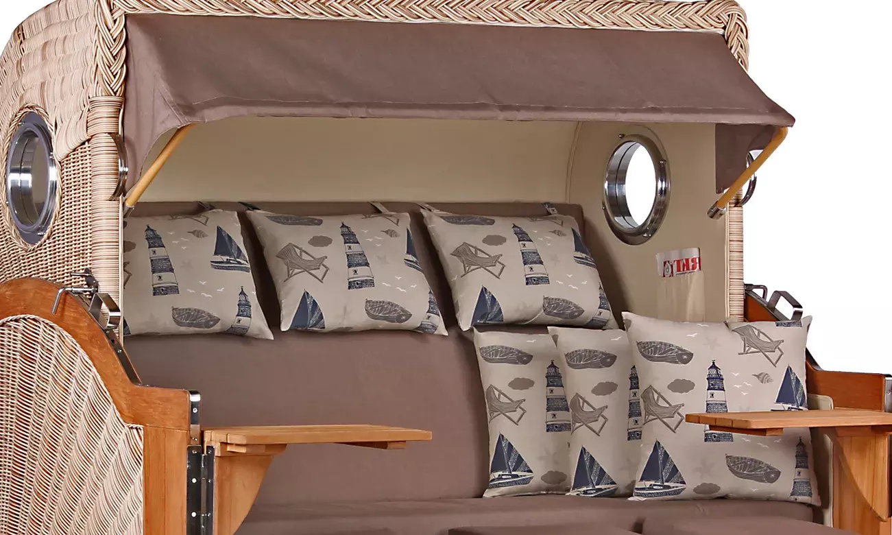 Strandkorb Westerland XXL Teak Bullauge PE shell Dessin 540