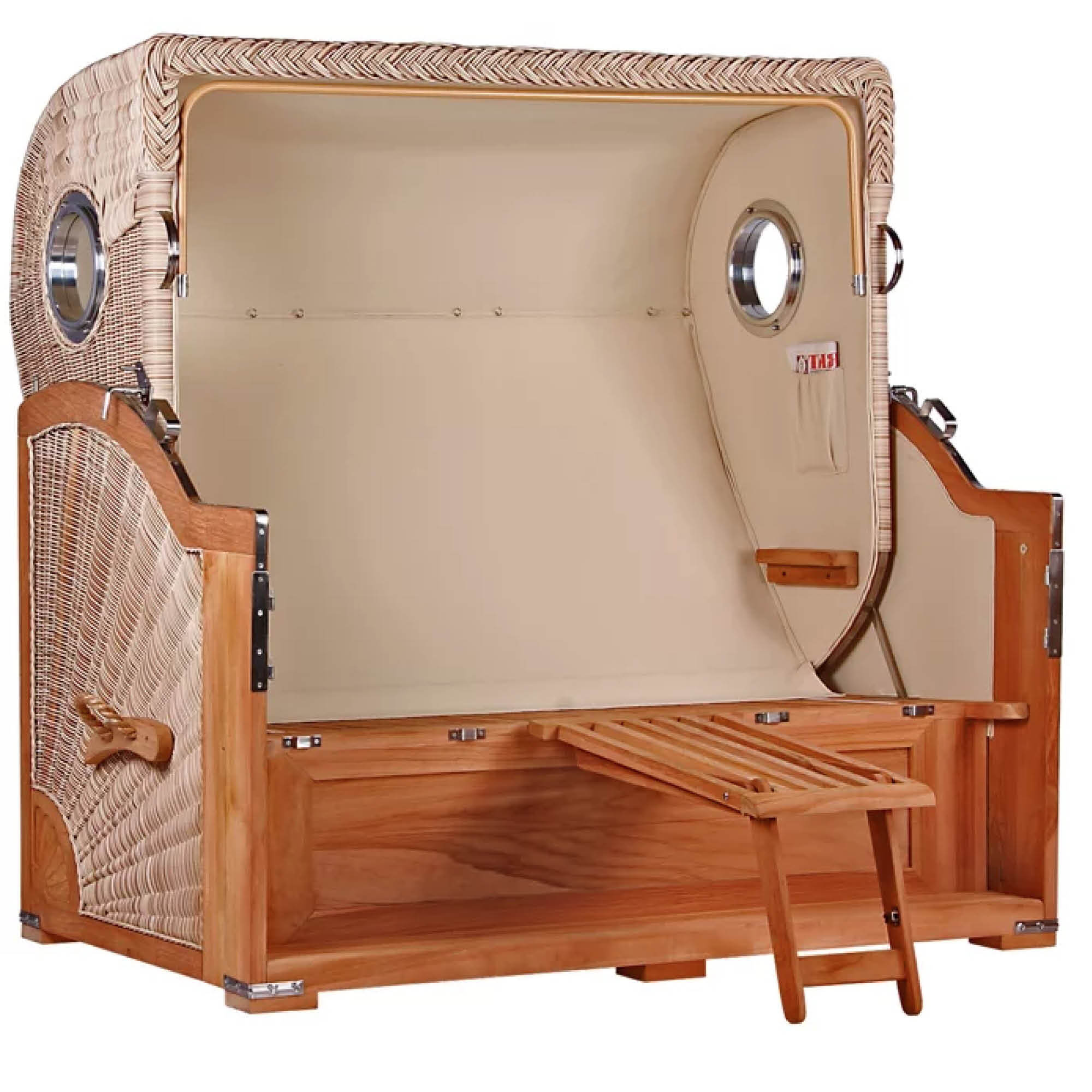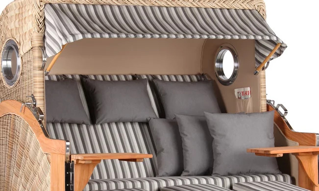 Strandkorb Westerland XXL Teak Bullauge PE shell Dessin 545-KOMPLETTSET