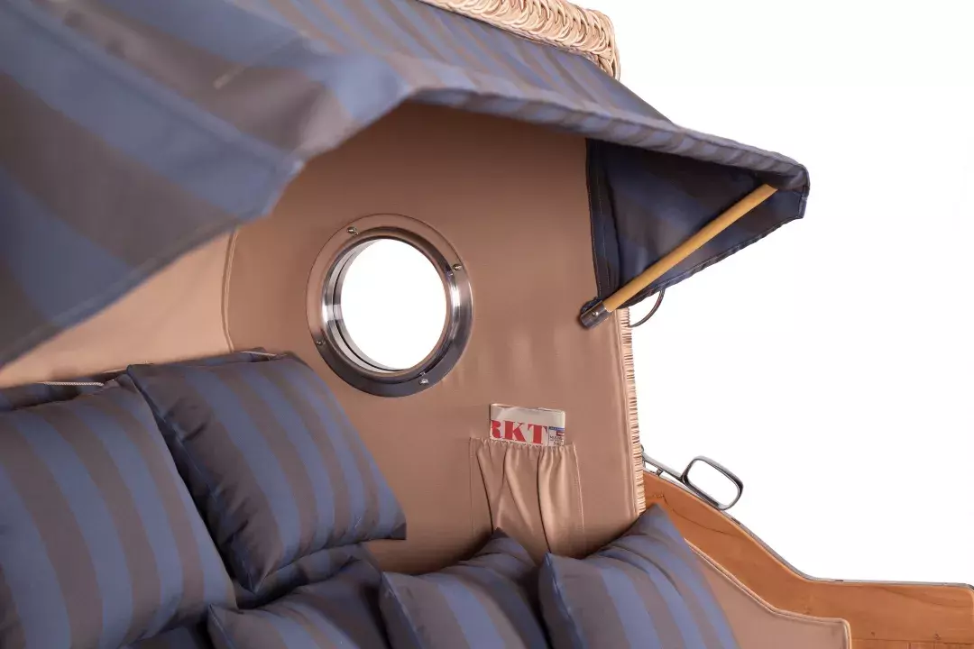 Strandkorb Westerland XXL Teak Bullauge PE shell Dessin 582
