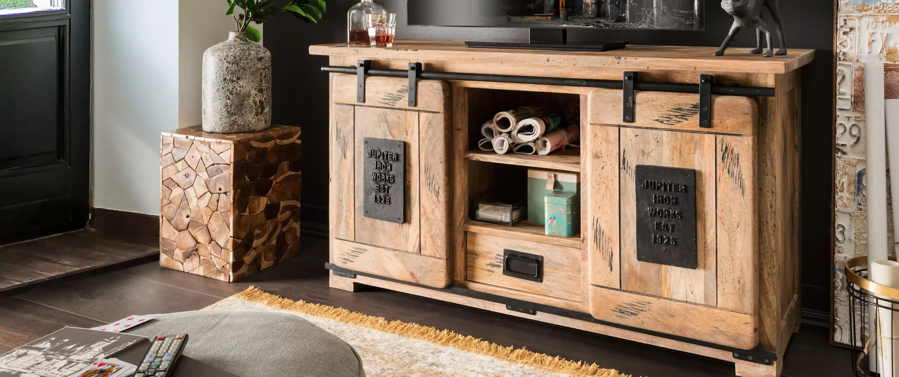 Erleben Sie die TV-Kommode Florenz Mango Vintage als langlebigen Begleiter mit viel Stauraum – und holen Sie sich natürliche Wohnwärme in Ihr Zuhause.